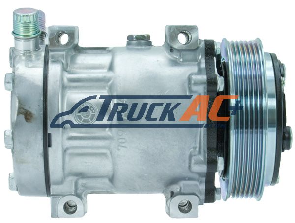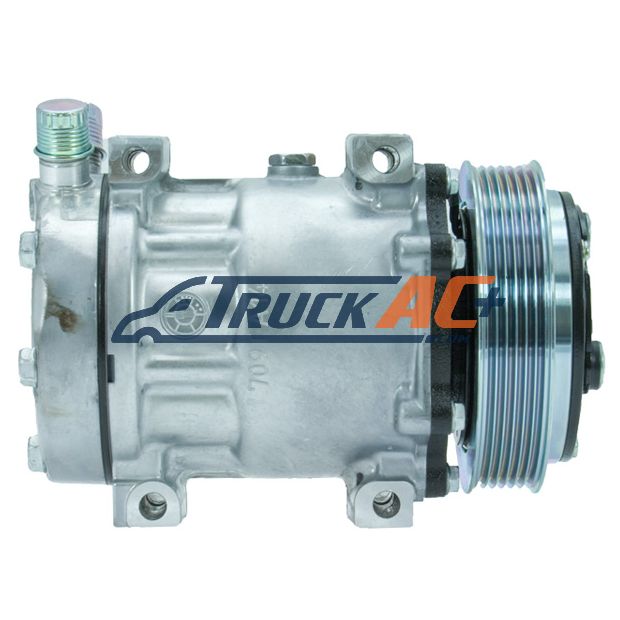 This high quality Sanden style A/C compressor is built to deliver crisp, cool air for seasons to come. Constructed of a robust metal blend, this compressor has the muscle to handle the demands of truck air conditioning systems. Boasting part numbers Sanden 4883, 4883U1, Truck Air 03-1200 and MEI 5339, this aftermarket compressor is designed to directly replace your worn out OEM unit. Featuring a simple, no-nonsense design, this compressor gets right down to the business of pumping refrigerant through your A/C system, helping you blast away the heat of summer and keep your truck's cabin at the ideal temperature. So whether you're hauling cargo cross-country or running errands around town, count on this Sanden style compressor to provide reliable, high-performance air conditioning for many miles to come.